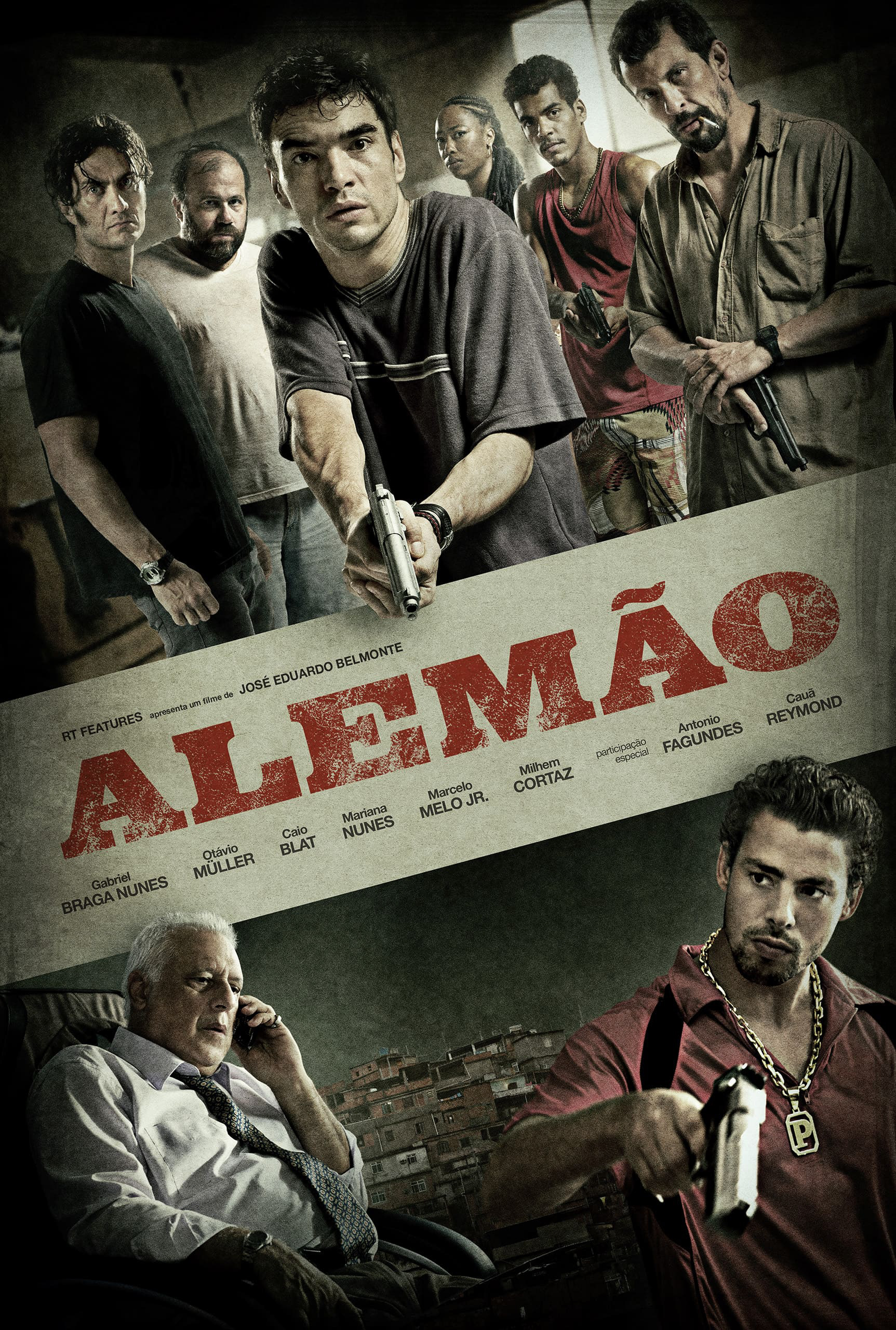 I retouched the images for the film poster Alemão. The client requested a color treatment heavily accentuated by contrasts and textures, as well as desaturated colors.