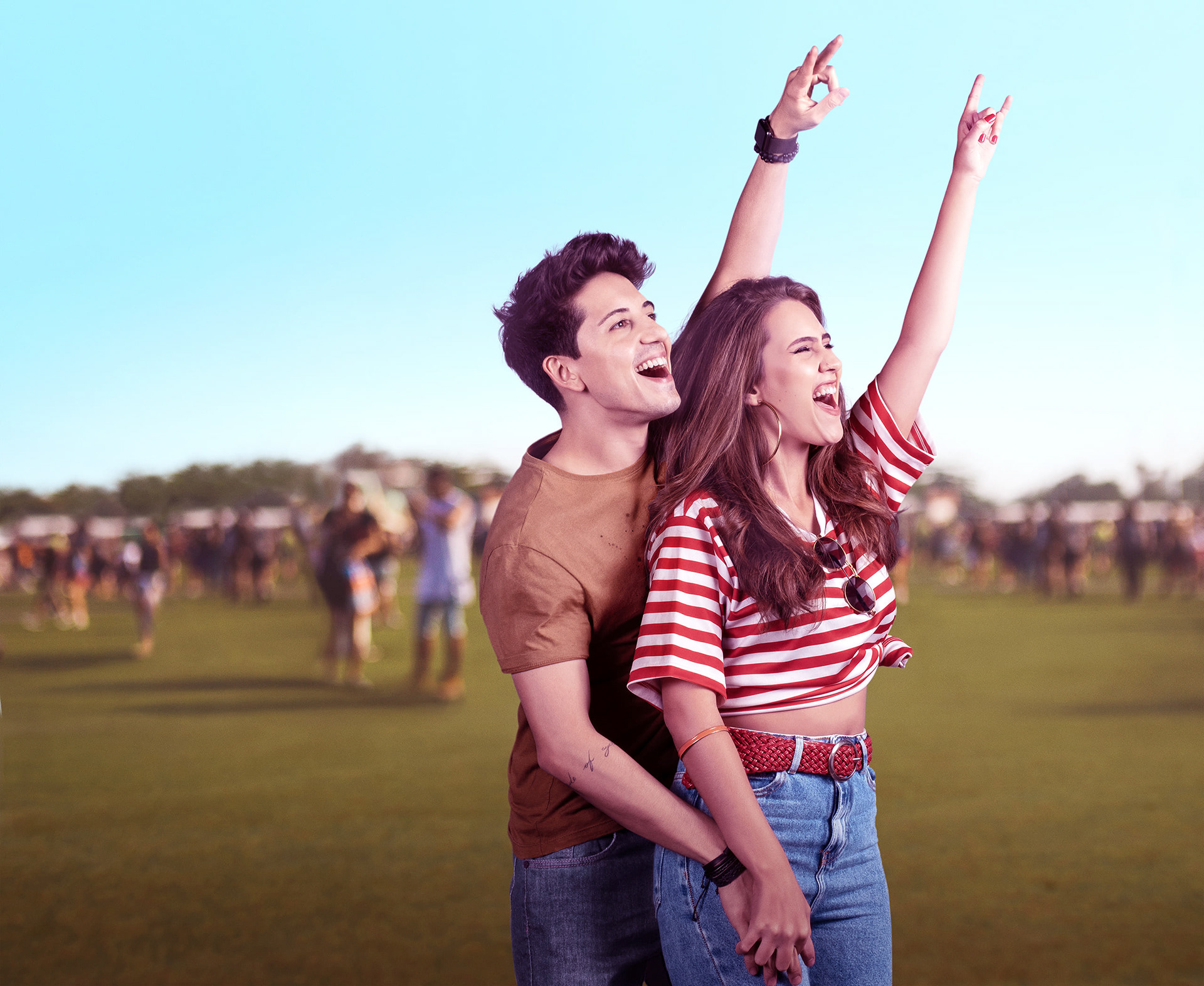 I was approached to retouch the images for the Tinder Festival Mode campaign, where people attending Rock in Rio could match through the app, even before arriving at the festival. Receive the photos from the agency.