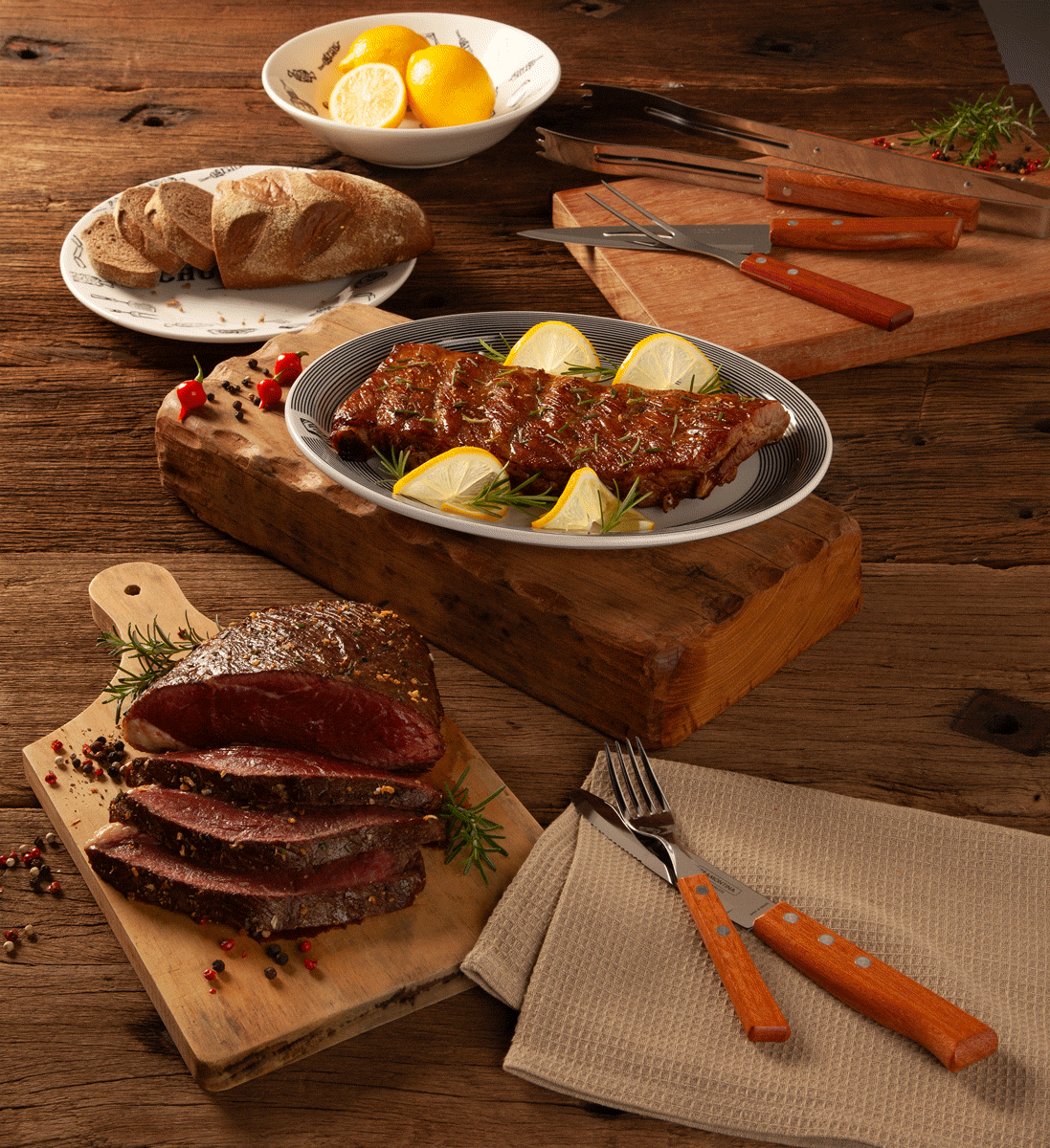 I was asked to produce the image for Jornal Extra's barbecue kit promotion. I needed to create an image featuring the kit's items along with the meats. I photographed and retouched the image, and the talented Diru produced it.