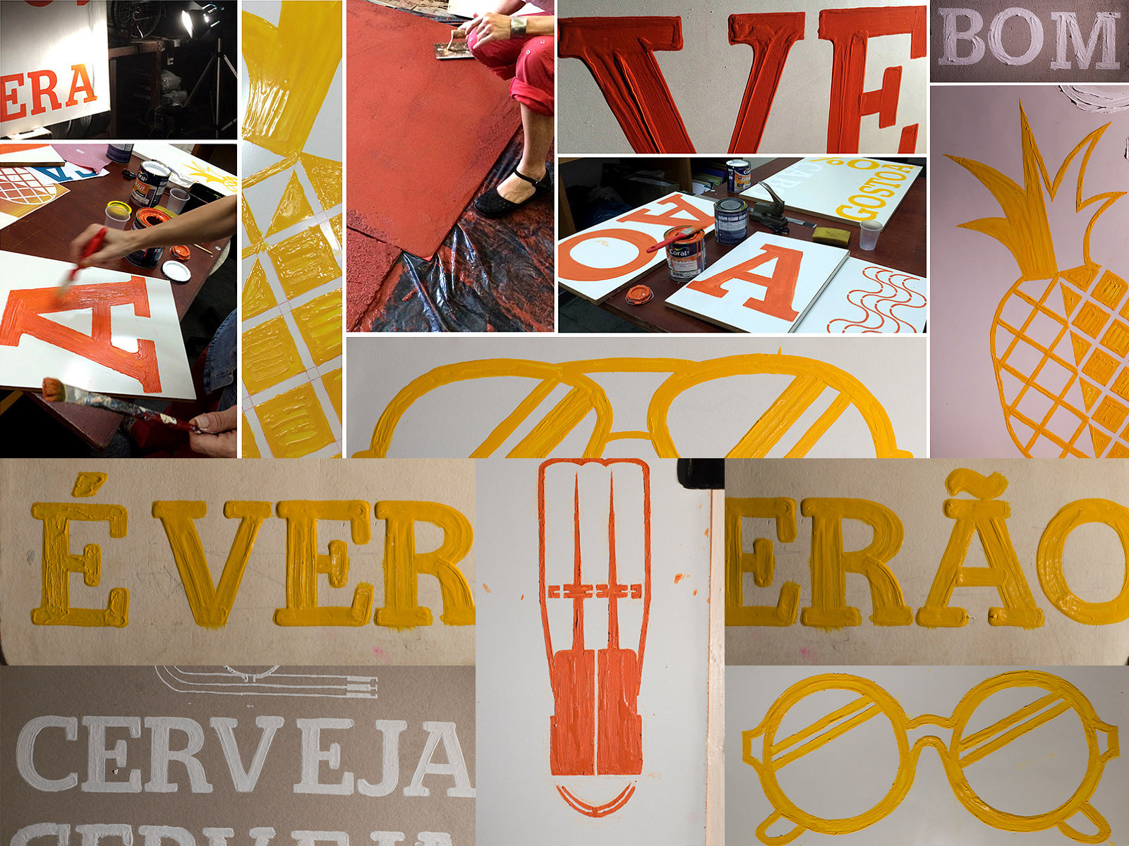 Both the backgrounds and the letters and icons were all hand-painted. The creative team requested that the elements have varied textures, and with that, the production team worked with different paints, styles, and surfaces.