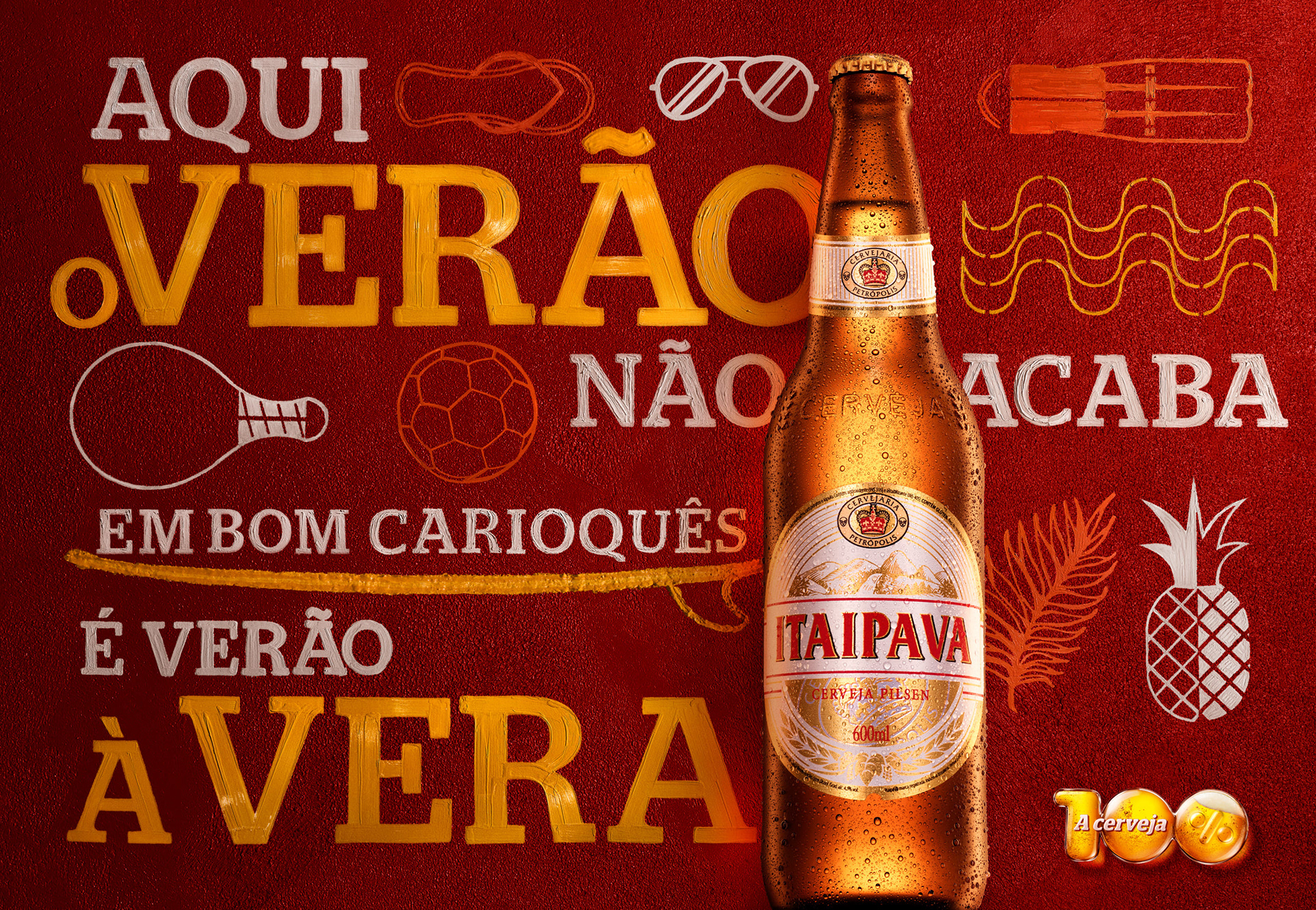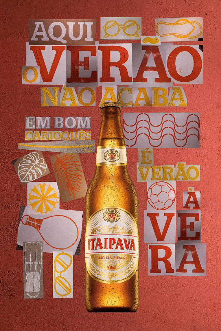 [PT BR] - Fomos procurados para fazer a edição de imagens para a campanha de verão da cervejaria Itaipava. Tanto o fundo quanto os ícones e letras foram produzidos à mão e trabalhados por nós para a produção dos diversos key visuals.